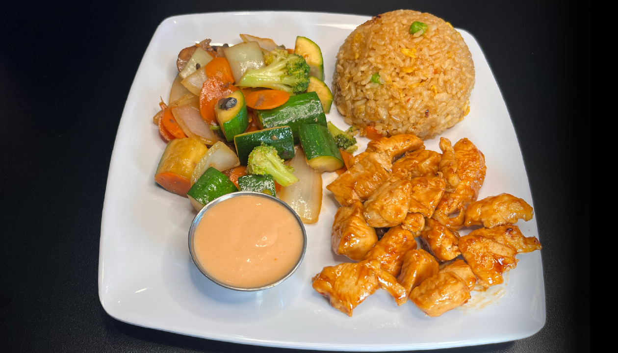 Served with Soup or Salad, Side of Fried Rice, Vegetables and Yum Yum Sauce.
